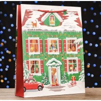 • Пакет бумажный  "Новогодний красный", 10 х 7 х 26 см